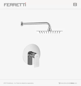 Ducha tina monocomando Ferretti de bronce pesado con acabado cromado de alta calidad, resistente a la corrosión y deterioro.